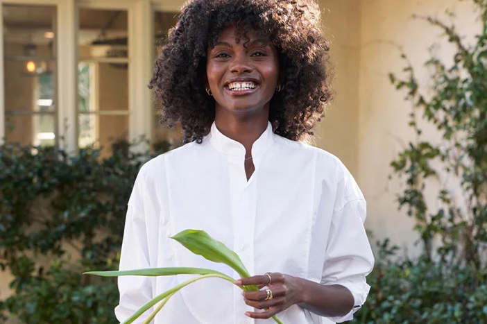 Frank & Eileen's first-ever tuxedo shirt, Victoria, is now available at duckeggBLUE and we couldn't be more delighted // The definition of true Italian luxury, if features a collarless, oversized-fit body with an exquisite woven jacquard bib // Beyond comfortable, with a smooth-to-the-touch Italian cotton fabrication, this style instantly elevates any outfit with a hint of Audrey Hepburn-inspired flair! // Available in luxe Italian white cotton, sizes XXS - L //