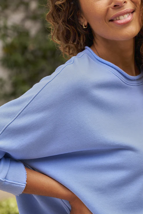 The sweatshirt features a relaxed silhouette, raw edge hem, and subtle details that bring a touch of California cool to your wardrobe // Available in three versatile colours, the Anna is a must-have for effortless everyday wear, whether you're at home or on the go //
