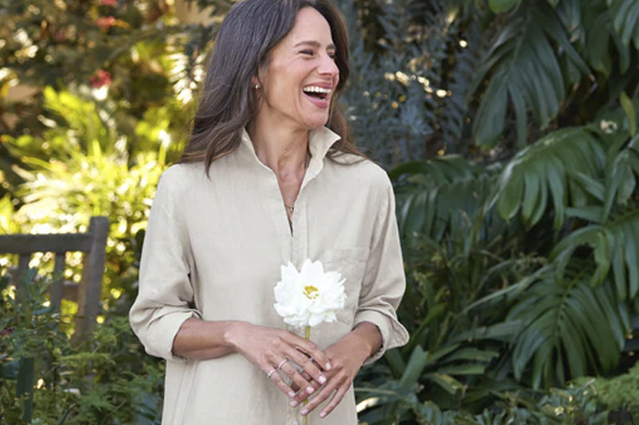 Long and lean, breezy and beautifully relaxed — Rory is the full-length, button-up dress your wardrobe didn’t know it was missing // Now crafted in Frank & Eileen’s 100% Washed Linen, Rory’s elongated silhouette floats with every step, while the oversized chest pocket and rollable sleeves channel that signature California ease //