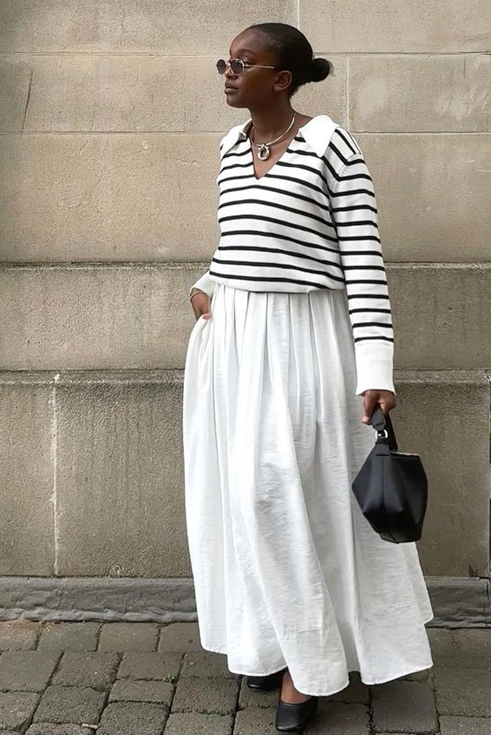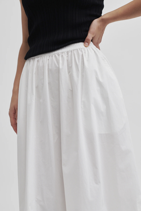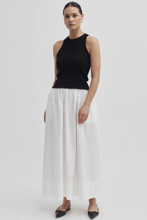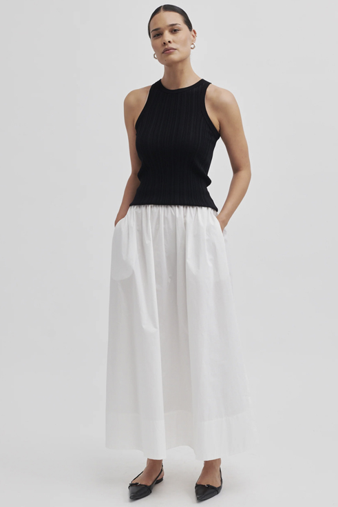 This summer, the white cotton maxi skirt courtesy of Second Female is the definitive statement piece to elevate your seasonal wardrobe // Effortlessly flattering & beyond comfortable, its graceful, sweeping silhouette offers an air of relaxed sophistication, while the soft organic cotton fabric speaks to both timeless elegance and modern sensibility //