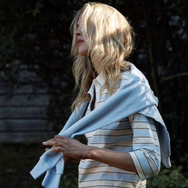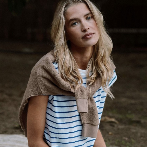 Perfect White Tee Ziggy Sweater in Powder Blue & Grass